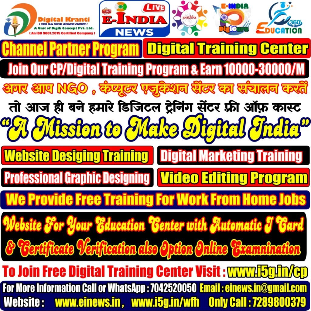 Get Best Income Platform By Digital Kranti & E-India News Network in Both fixed Salary System and Commission-Based Programs as a Channel Partner (Office Must ) Best Suit For : Computer Institute / Coaching Calsses / CSC Center , Cyber Cafe / School / NGO & Printing Press or Digital Studio or or Block Co-ordinator with Lifetime Time Membership of Rs. 1499 With Benefits More Than Rs. 12,000 and Best Income Program
